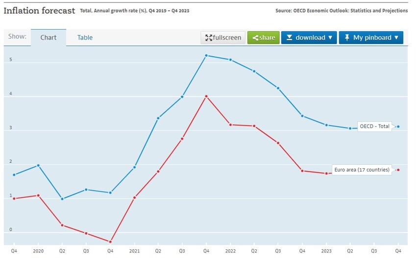 4.OECDのインフレ予測は以下の通り。2021年Q4がピークだ。