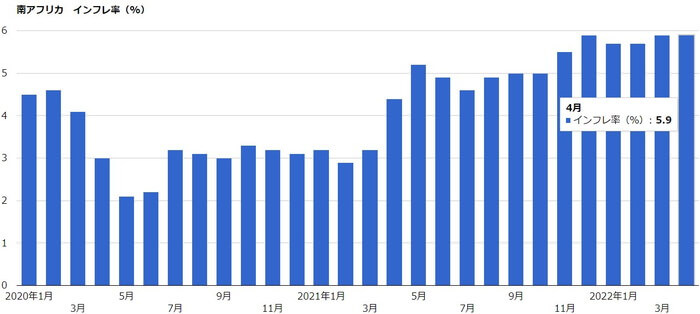 インフレ圧力が高まるから南アフリカランド売りにつながるぞ。