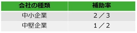 補助額は、通常枠においては従業員数ごとに上限額が異なりますが、従業員数が51人以上の会社では上限が8,000万円になります(図表1)。なお、特別枠での上限は1億円となっています。補助率は、中小企業の場合は2/3、中堅企業の場合は1/2となります(図表2)。