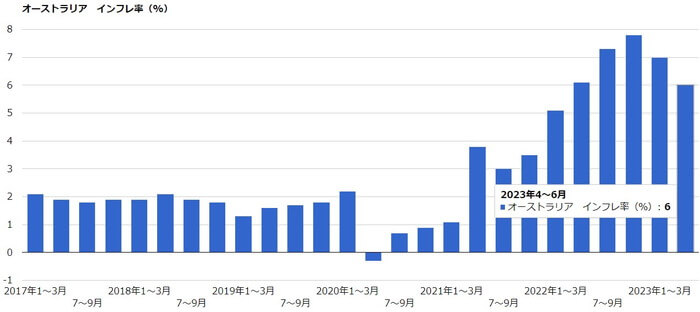 インフレ率が高いとお金の価値が下がるので、豪ドルが売られます。