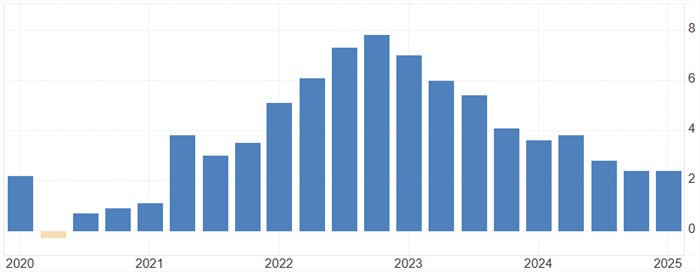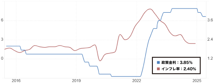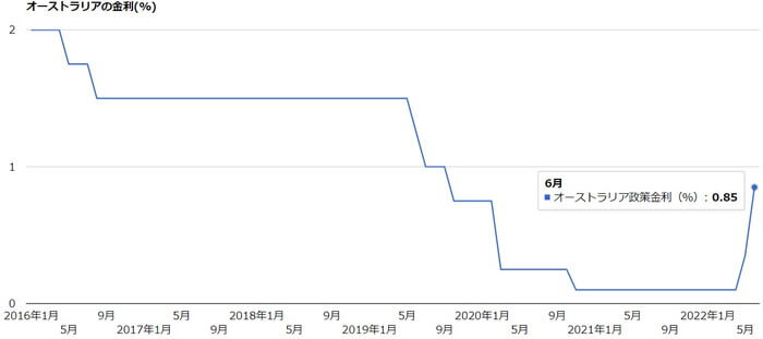 オーストラリアのインフレ率は2.40%、政策金利は3.85%なので、実質金利は1.45%です。