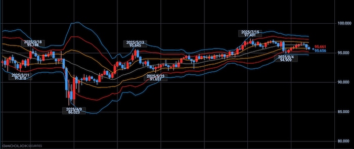 直近1ヶ月(2025年7月中旬~8月中旬)の豪ドル円は、明確な方向感に欠け、おおむねレンジ相場での推移となりました。