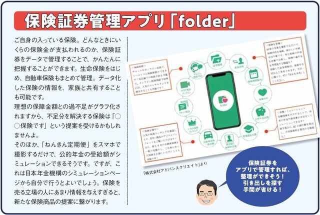 保険市場が提供しているアプリ「folder」は、保険の比較や、保険証券の管理、給付金の請求まで、サポートしてくれます。保険証券をスマホで撮影するだけで、データ化してくれるため、紛失時にも安心です。