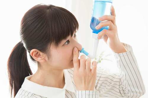 塩水を鼻に入れるときに「あー」と声を出しながら行うと、塩水が耳に入りにくく、鼻うがいに不慣れな人でもやりやすい。