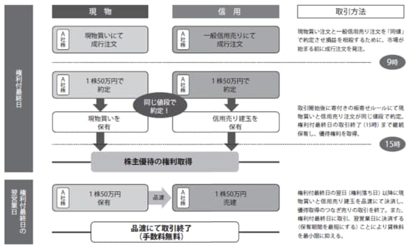【図表】(例)A社株50万円分のつなぎ売りで優待の権利を狙う場合