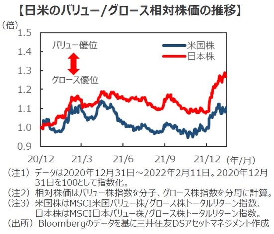 ■世界の株式市場は不安定な動きを続けていますが、そんな中にあって、日米のバリュー株は堅調に推移しています。2010年代は長らくグロース株優位の相場が続きましたが、バリュー株の相対パフォーマンスは一昨年の秋に大底を入れ、最近では日米ともにバリュー株の優位が目立つようになってきました。