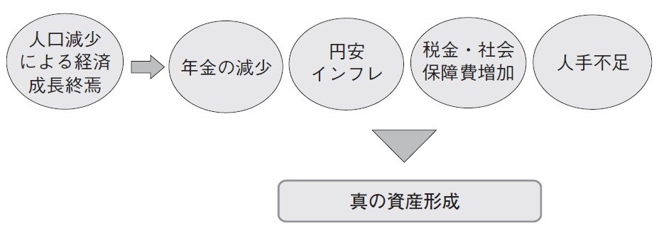 人口=国力です。人口減は日本の国力の相対的な低下につながることから、対外為替は徐々に円安基調になっていくと見込まれる一方、世界の周りの国は人口が増えるわけですから、日本の購買力の低下にかかわらずインフレは進んでいくことでしょう。