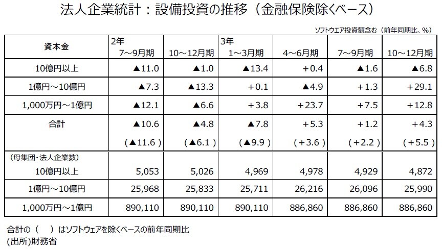 ※当レポートの閲覧に当たっては【ご注意】をご参照ください(見当たらない場合は関連記事『2021年10~12月期法人企業統計・設備投資などについて』を参照)。