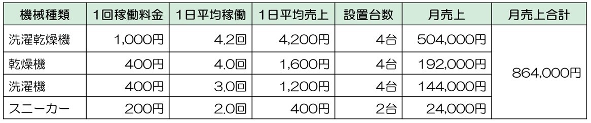 これらの機械の利用料金や稼働回数などから想定月間売上を考えてみると、月売上は約86万円(年間約1,000万円)であることが分かります(図表2)。
