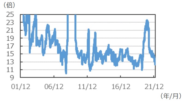 ■世界景気の悪化を受けて企業業績が下振れるリスクは意識せざるを得ない状況ですが、ことバリュエーションに関する限り、その調整余地は限られているように思われます。