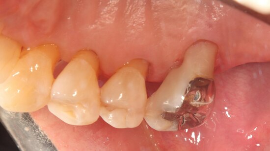 【写真】は歯周病治療を行ってから、26年間定期管理を続けている83歳女性の左上の歯です。奥歯一本が手遅れで抜歯になりましたが、その後はご本人の努力できれいに維持できています。しかし誰もがこのような経過を辿るわけではありません。