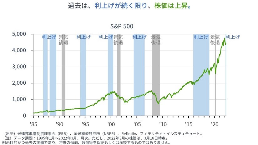 [図表3]に示すとおり、株式市場は、過去は「利上げが続く間は、株価は右肩上がりの傾向」が確認されます。「利上げ期≒景気拡大期」であるためです。