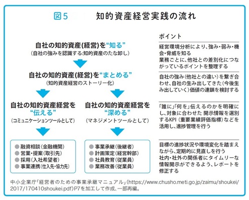 こういった点を踏まえ、現経営者が事業に対する想いや価値観、信条を再確認し、後継者に伝えるプロセスは極めて重要であり、事業承継の本質であると捉えるべきです。そこでお勧めしたいのは、経済産業省WEBページの「知的資産経営ポータル」で取り上げている、「事業価値を高める経営レポート」や「知的資産経営報告書」の活用です。
