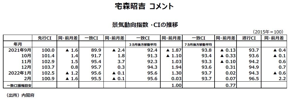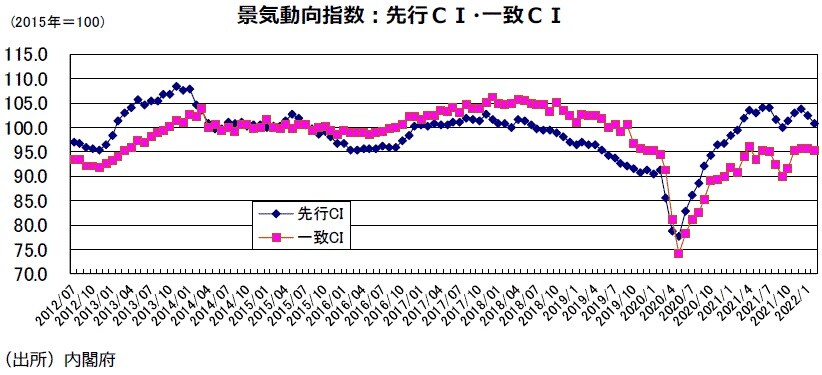 ※当レポートの閲覧に当たっては【ご注意】をご参照ください(見当たらない場合は関連記事『2022年2月分景気動向指数(速報値)』を参照)。