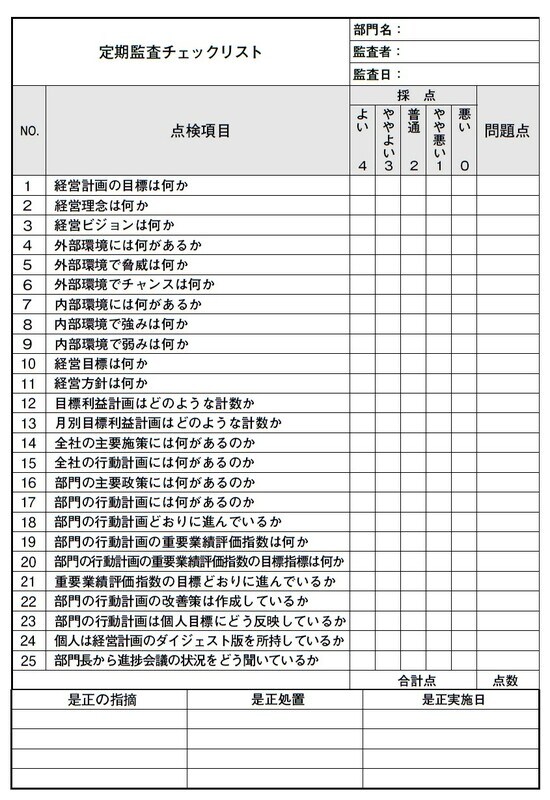 ほかにも、経営計画を会社に定着させる方法はあります。たとえば、経営計画の定期監査を実施するのです。また、賞与査定の人事考課表に、経営計画の成果の項目を入れるのも手です。
