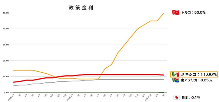 また、レートに大きく影響を与えるメキシコ中央銀行の金利政策も把握しておきましょう。