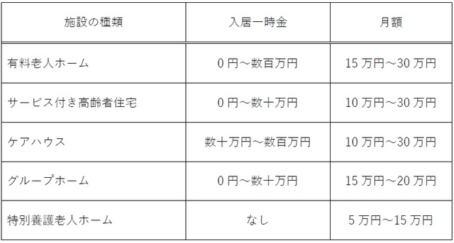 介護が必要となった時には、上記生活費にさらに介護サービスの対価の支払いが生じます。施設に入居するとなると、【図表】で最も安い特別養護老人ホームでさえ毎月約5万円~15万円の支払いが発生します。年金以外に収入がなければ預貯金を取り崩すスピードが加速し、あっという間に老後資金が枯渇することになりかねません。
