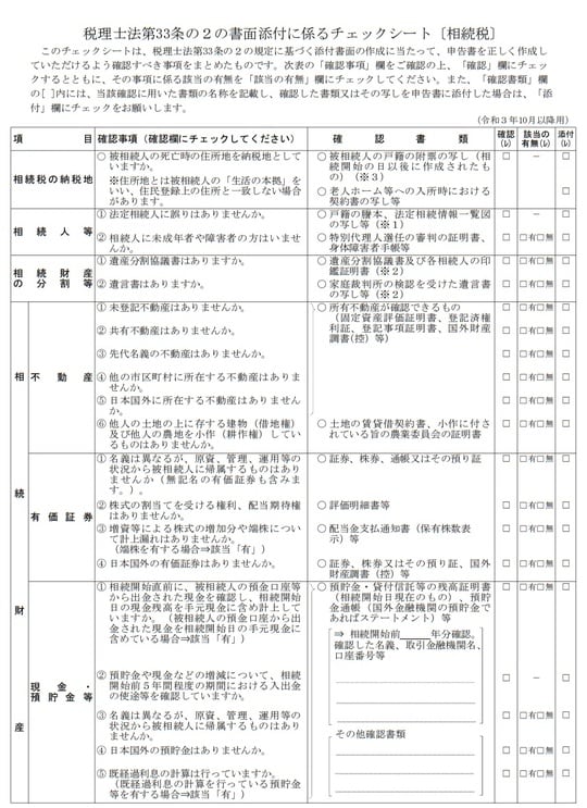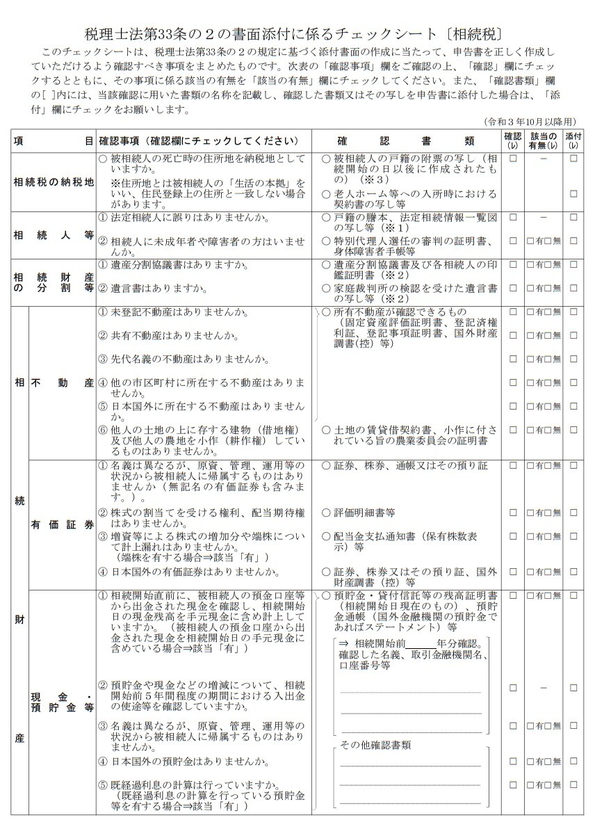 相続税申告について書面添付制度を活用できている税理士は非常に少ないです。その理由は国税庁ホームページより「税理士法第33条の2の書面添付に係るチェックシート〔相続税〕」をご確認いただくとお分かりいただけるでしょう([図表1]参照)。[図表1]はシートの1ページ目であり、これが8ページにまで及びます。