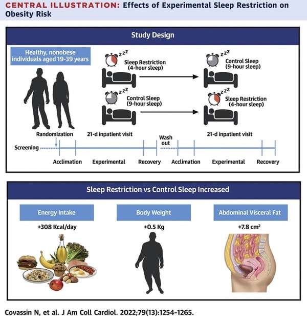 このたび、米メイヨー・クリニックの研究者らは、「食物に自由にアクセスできる環境において、睡眠不足は食べるカロリーを増やし、結果として脂肪、特に不健康な内臓脂肪を蓄積する」ことを明らかにし、2022年4月の米心臓学会(ACC)が発行する学術誌「Journal of the American College of Cardiology」誌に報告しました(※1)。私自身、興味津々のこの報告、さっそく皆さんにシェアさせていただきます。