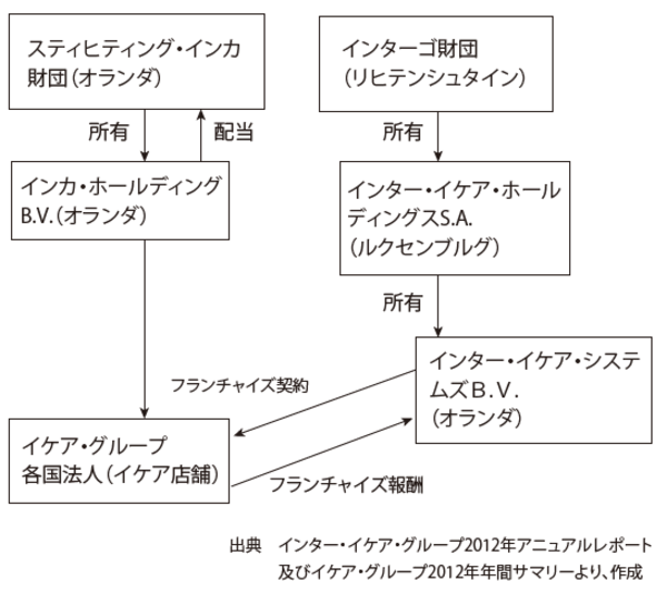 イケアグループの頂点には2つの財団があり、各々が異なる役割を果たしながら、それぞれの傘下に複数のグループ会社を持ち、外部からは資金の流れが見えにくい、複雑な体制をつくり上げているのです。
