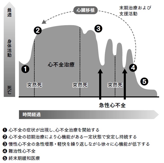 しかし、そうでなければ急激な増悪を繰り返し、やがて難治性心不全、終末期緩和医療へと移行していくのです。