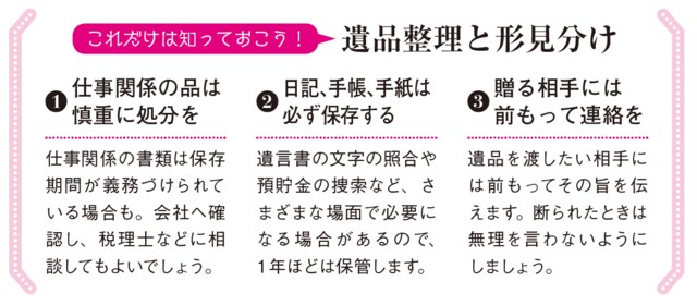 実印や預金通帳、株券など遺産に関係ある品はもちろん、故人の日記や手帳、手紙は必ず保管しておきましょう。