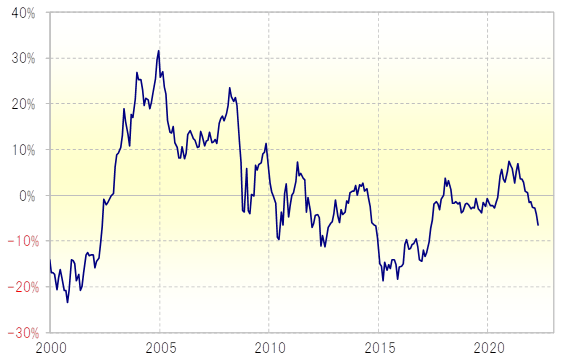 こんなふうに、インフレ下で米ドル以外の先進国通貨の多くが下落、つまり通貨安となっていますが、そのなかで注目されるのは、通貨安の「程度」には差があるということです。