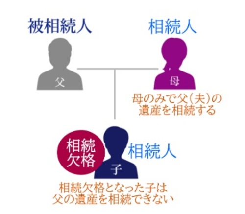 たとえば、相続人である子供が、被相続人である父親を殺害したとしましょう。この場合、父親の相続において子供は相続欠格になり、母親のみが父親の遺産を相続することとなります。しかし、母親の相続では子供は相続欠格には該当しないため、子供は相続人として母親の遺産を相続できます。