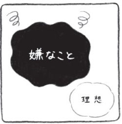 頭のなかに嫌なことと理想の状況を並べます。そのとき、嫌なことが大きく、理想の状況が右下に小さくある図をイメージしましょう。