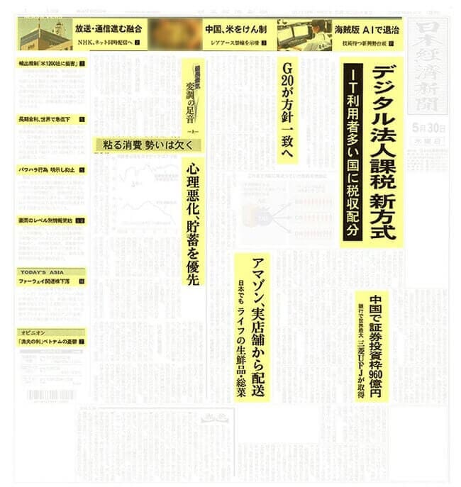 一方、紙面の場合は文字の大きさにメリハリがあるうえ、次の画像のように見出しだけを拾い読みすることで何が書かれているかを把握することができます。