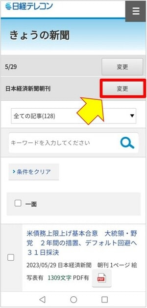 STEP4:媒体名の右側の「変更」をタップして、読みたい新聞を選ぶ
