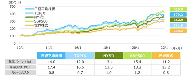 ◆過去10年間の各株式指数の推移