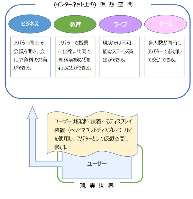 メタバースでは、利用者が分身である「アバター」を動かして経済活動や交流を行うことができます。旧フェイスブックが社名を「メタ・プラットフォームズ」に変更したことなどから急速に注目が高まっています。