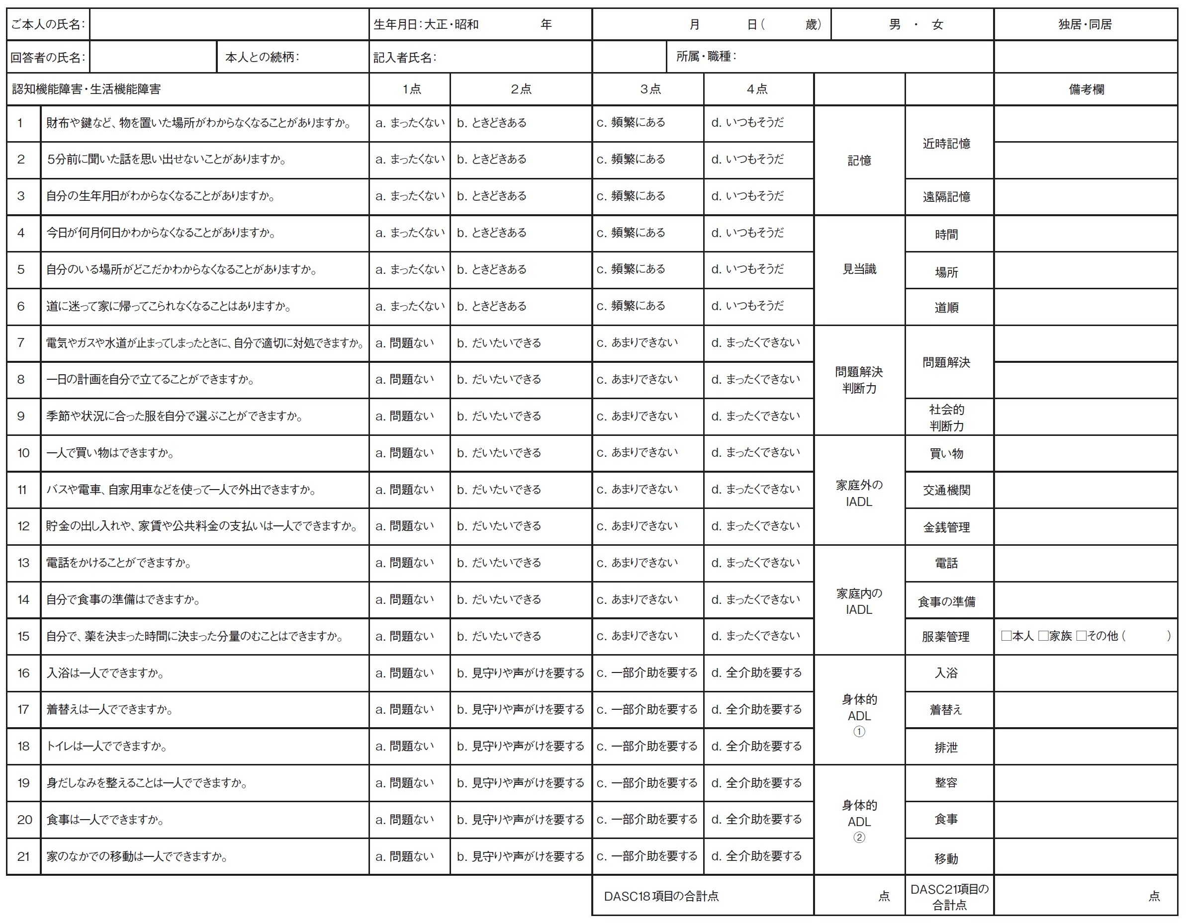 ⇒cまたはdが1項目でもついたら認知症の疑いあり