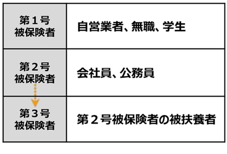 先生:いずれの年金にも共通するけれど、「国民年金」と「厚生年金」の2つがあるんだ。国民年金は自営業者と会社員の奥さんで専業主婦だった人、厚生年金は会社員の年金だと覚えておいたらいいよ。正確に言うと、会社員は国民年金と厚生年金の両方をもらえるんだけどね。制度上は、第1号被保険者、第2号被保険者、そして、第3号被保険者の3つに分けられているんだ。