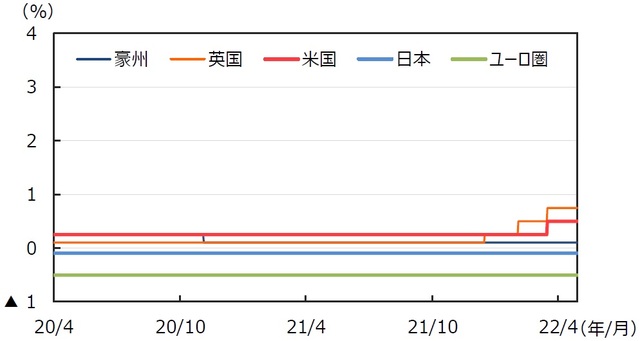 豪州は、感染拡大の影響で1-3月は景気回復が足踏みするものの、4-6月以降は堅調な成長が続くと想定しています。豪州の輸出品目である石炭や天然ガスなどの価格上昇による貿易黒字の増加が見込まれ、ウクライナ危機の影響は限定的とみられます。
