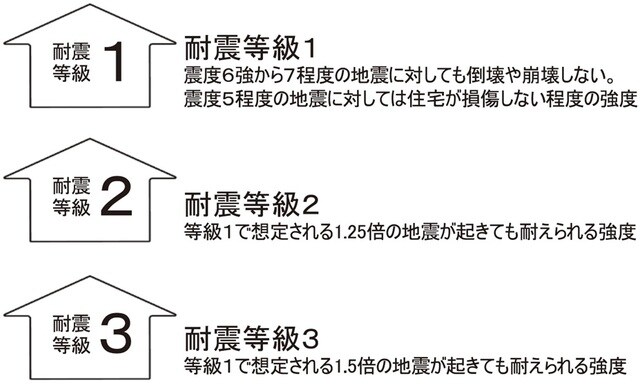 佐藤:2000年に施行された「住宅の品質確保の促進等に関する法律(品確法)」で、施主に判りやすい耐震性の判断基準として、耐震等級が定められています。これは等級1から等級3まで3段階に分けて表されます。耐震等級1は先ほど説明した建築基準法で要求している耐震性能のことです。