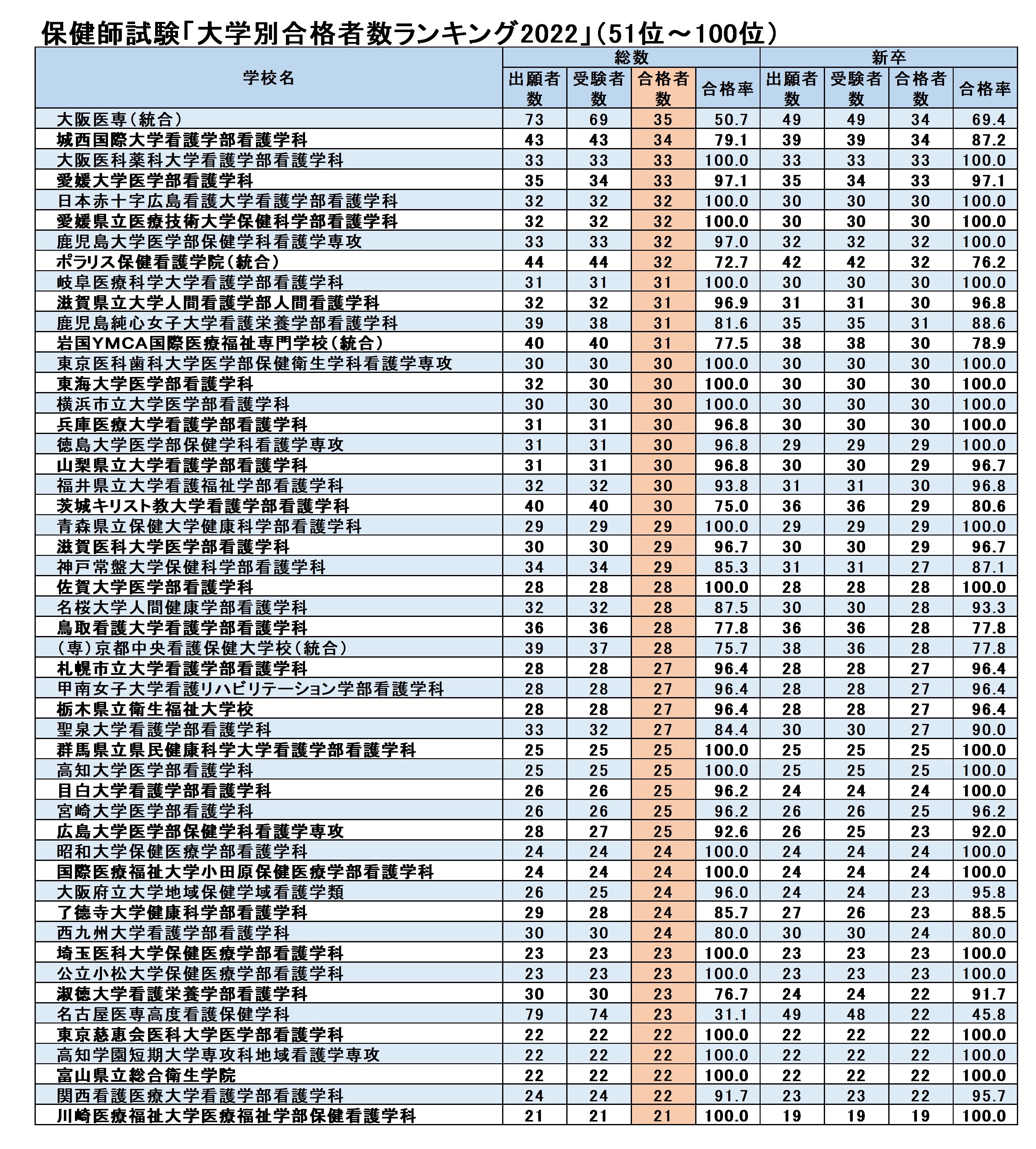 次ページ 保健師試験「大学別合格者数ランキング2022」(101~150位)