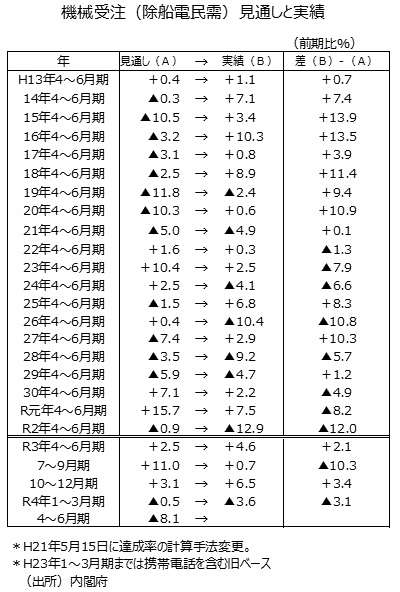 ※当レポートの閲覧に当たっては【ご注意】をご参照ください(見当たらない場合は関連記事『2022年3月分機械受注』を参照)。