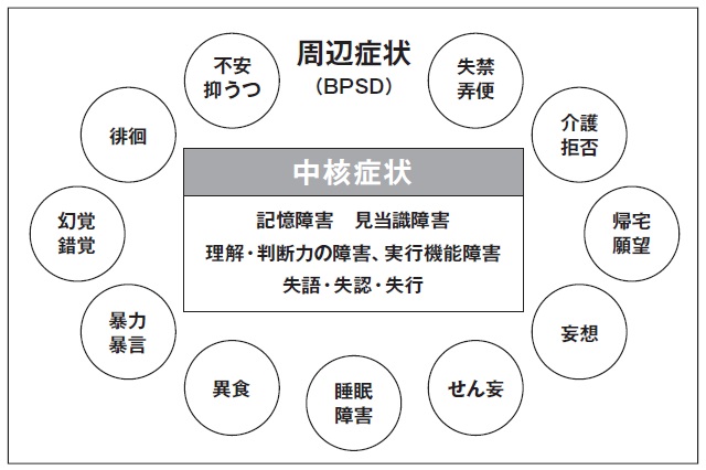 認知症の症状には「中核症状」と「周辺症状(BPSD)」があります【図表】。
