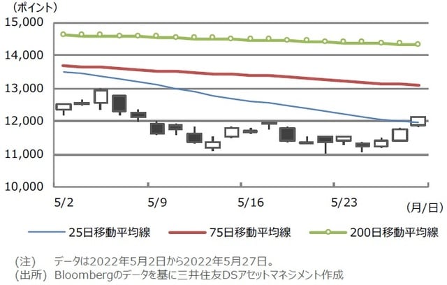 なお、ナスダックは5月27日に、25日移動平均線を上抜けて取引を終えています(図表1)。この先、75日移動平均線(5月27日時点で13,095.95ポイント)を回復すれば、底離れがより明確になり、200日移動平均線(同14,332.15ポイント)を回復すれば、調整局面はほぼ終了と考えられます。相場の大底の判断は、非常に難しいのですが、その兆しは見え始めているようにも思われます。