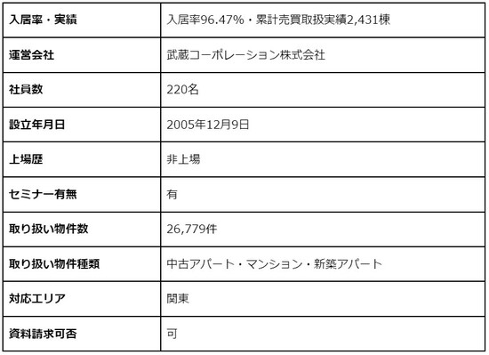 1.6. 入居率96.47%の中古アパート・マンション投資会社「武蔵コーポレーション」