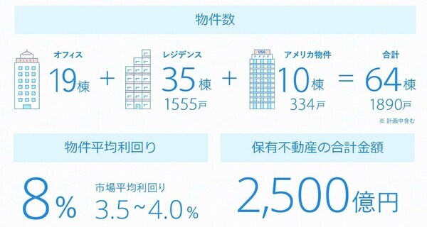 これまでの実績として、国内の所有不動産は将来的にも需要が見込める東京23区をターゲットとし、オフィスビルについては特に都心3区(港区・千代田区・中央区)を、レジデンスについては、都心3区に加えて、都心へアクセスしやすい好立地エリアで、駅近の物件を中心に開発を進めてきました。