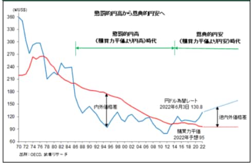 購買力平価を3割以上下回る円安で国内投資、雇用増が活発化する。