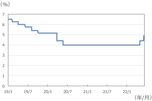■RBIは、22年度のインフレ見通しを5.7%から6.7%に上方修正しました。インフレ見通しは、23年1-3月期にインフレ目標範囲に戻ると想定しているとみられるため、弊社は、インフレが目標範囲に入るまで、RBIが継続的に追加利上げを行うと予想しています。政策金利は9月に5.40%、22年末に5.90%、23年末は6.25%と予想しています。