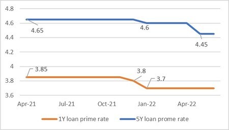 5月には住宅ローン金利に影響を及ぼす5年物LPRを15bps引き下げていた。前回の5年物LPRの引き下げ幅は、2019年にLPRが現行の制度に移行してから、最も大幅な引き下げで、不動産市況の下支えを意図したものであると解釈されている。