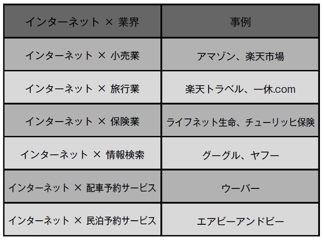 たとえば、インターネット(スマホ)という新しい技術と既存の事業(市場)を組み合わせることにより、多くの事業が誕生しました(図表1)。このように、片方の軸(この場合は「技術」)を固定させるとより具体的にアイデアを発想しやすくなります。