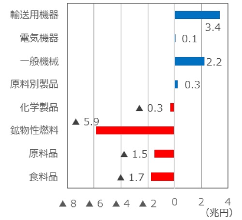 ■最近の日本の貿易構造を品目別に見てみます。輸出額では、一般機械、電気機器、輸送用機器の上位3項目で半分程度を占めています。これらは、足元では中国・上海市等でのロックダウンなど、新型コロナウイルスの感染拡大による経済停滞の影響が見られます。