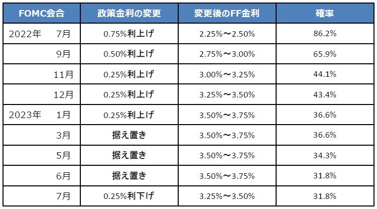 FF先物は大幅利上げの織り込み後、景気減速懸念で利下げの織り込みを開始、原油は下落へ