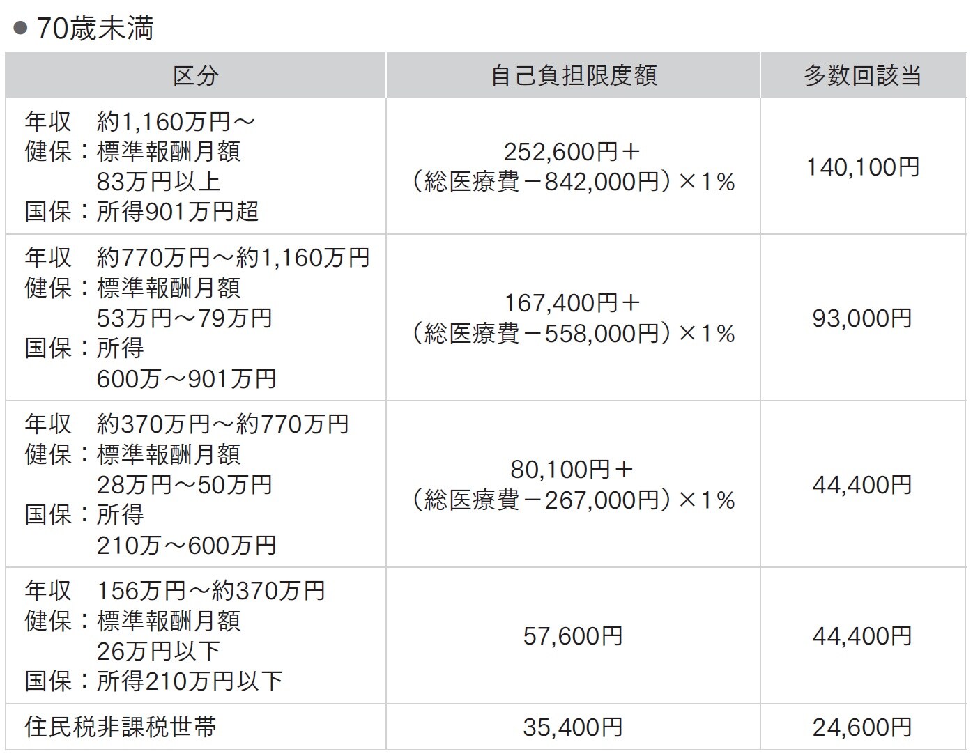 ◆高額療養費制度の自己負担限度額